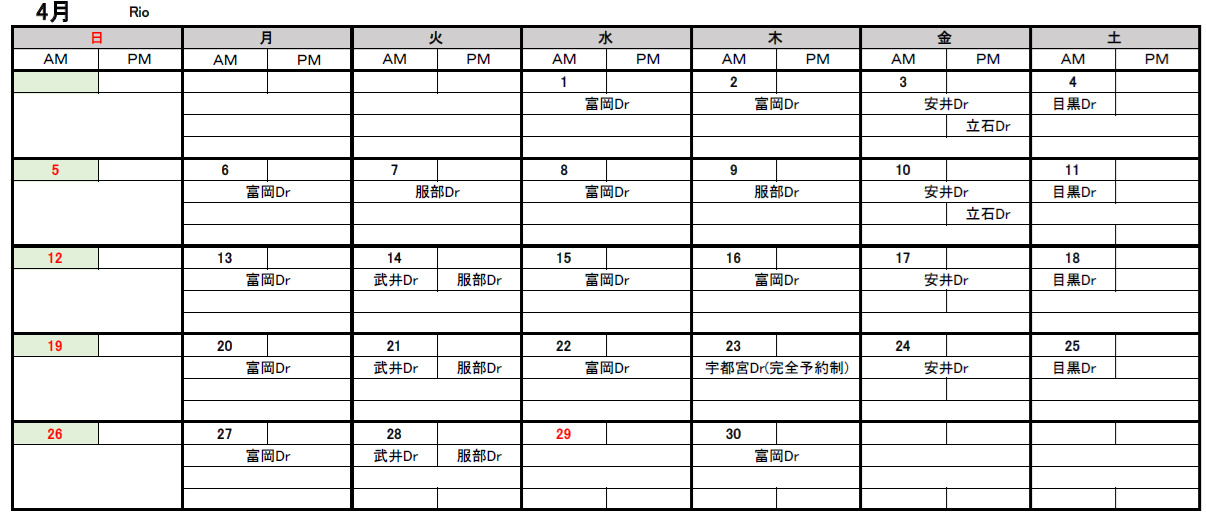 2026年4月の外来診療の担当医が決定しましたのでお知らせ致します。